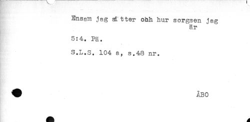 //// Ensam jag st tter ohh hur sorgsen jag //// är //// 5:4. Pä. //// S.L.S. 104 a, s.48 nr. ////