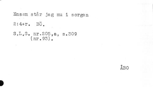 //// Ensam står jag mu i sorgen //// 2:4+r. BÖ. //// S.L.S. nr.205,a, s.309 //// (nr.95). //// ÅBO ////