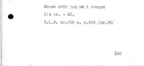 //// Ensam står jag nn i sorgen //// ^ 2:4 +r. - BÖ. //// S.L.S. nr.205 a. s.309 /nr.93 //// /n //// ! //// t //// ÅBO //// -......^.....:....... ////