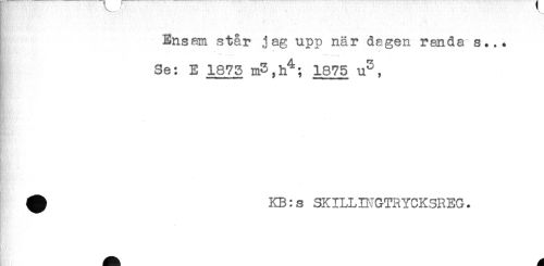 //// Ensam står jag upp när dagen randa s... //// ^ -...... - ' //// Se: E 1873 1875 u^, //// HR-' //// HB; //// ^ KB: s SKILLBIGTRYCKSREG. ////