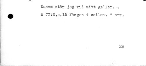 //// * //// ' Ensam står jag vid mitt galler... //// j //// ^ B 73:2,s.16 Fången i cellen. 7 str. //// ; //// t //// * //// RA ////