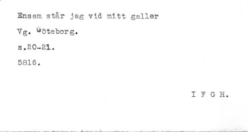 //// Ensam står jag vid mitt galler //// Vg. Göteborg, //// s.20-21. //// 5816. //// I F G H. ////