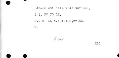 //// Ensam uti hela viåa världen, //// 5:4. FÖ-JO-LE. //// - //// S.L.S. 46,s.181-182,nr.65. //// i N. //// C //// ÅBO //// A * i ////