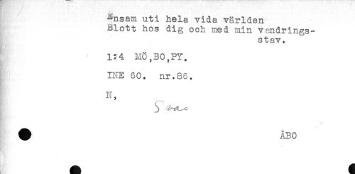 //// -Rnsam uti hela vida världen //// Blott hos dig och med min vandrings- //// stav. //// a //// 1?4 HÖ,BO,FY. //// . //// INE 60. nr.86. //// N, //// I //// i- ////