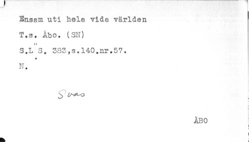 //// Ensam uti hela vida världen //// T.s. Åbo. (SN) //// n //// S.L S. 385,s.140.nr.57. //// + //// N. //// * //// : //// ! //// i. //// ÅBO ////