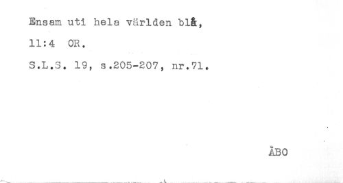//// Ensam uti hela världen blå, //// 11:4 OR. //// . - //// S.L.S. 19, s.205-807, nr.71. //// \ //// ÅBO //// ^ ____, L ////