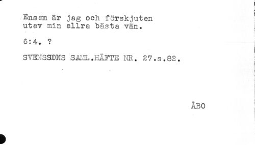 //// ; //// Ensam är jag och förskjuten //// utav min allra bästa vän. //// 6:4. ? //// SVENSSDNS SAI,IL.HÄFTE NR. 27.s.82. //// ) //// < //// ÅBO ////