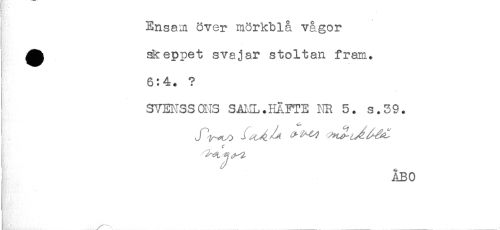 //// Ensam över mörkblå vågor //// < //// ^ skeppet svajar stoltan fram. //// 6:4. ? //// SVEI^SSONS SAI.^.IULFTE NR 5. 3.39. //// . //// r //// ÅBO ////