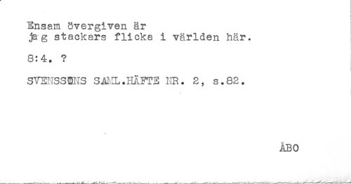 //// ! //// i //// Ensam övergiven är //// jag stackars flicka i världen här. //// 8:4. ? //// SVENSSENS S^KL.HÄFTE NR. 2, s.82. //// ÅBO ////