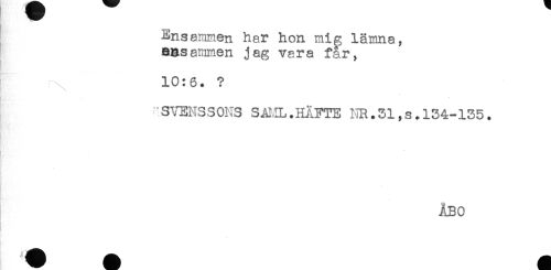//// Ensammen har hon mig lämna, //// BBsammen jag vara får, //// 10:6. ? //// SVENSSONS SAML.HÄFTE NR.31,s.134-135. //// ! //// - ////