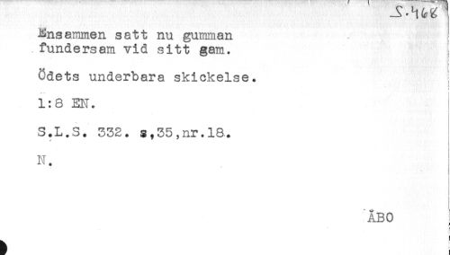 //// _ A ^ ! s^? //// Ensammen satt nu gumman //// . fundersam vid sitt gam. ^ //// ödets underbara skickelse. I //// 1:8 EN. //// < //// * i //// l //// t //// S.L.S. 332. s,35,nr.18. //// N. //// < //// < //// ÅBO //// c //// f //// i ////