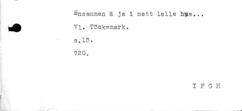 //// ] //// Ensammen ä ja i mett lelle hys... //// j //// VI. Töcksmark. //// s.13. //// 720. //// I F G H //// ___:---- ----^ ////