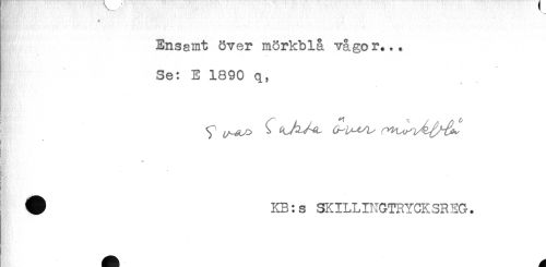 //// Ensamt över mörkblå vågor... //// Se: E 1890 q, //// ^ ^ ^tA/^ ^^ //// ^ KB:s SKILLINGTRYCKSREG. ////