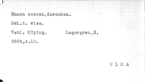 //// - ' * //// + //// [ //// Enson socken,darocken. //// Hel.t. visa. //// Vsml. Köping, Lagergren,E. //// 8504,s.18. //// t //// ! //// ) //// . < //// ! //// ! //// U L M A //// ) ////