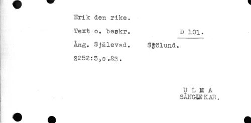 //// Erik den rike. //// Text o. beskr. D 101. //// Ang. Själevad. S&ölund. //// 2252:5,s.23. //// t //// U L N A //// SÅI-IGDS KAR. ////