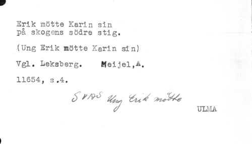 //// Erik mötte Karin sin //// på skogens södre stig. //// (Ung Erik mötte Karin sin) //// Vgl. Leksberg. Meijel,^.. //// 11654, s.4. //// UL1.IA ////