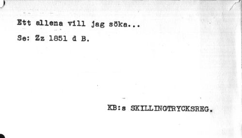 //// //// /Ett allena vill jag söka... //// .... ^ //// Se: Zz 1851 d B. //// j //// ) //// ! //// i //// i //// '..'t' ' //// KB:s SKILLINGTRYCKSREG. ////