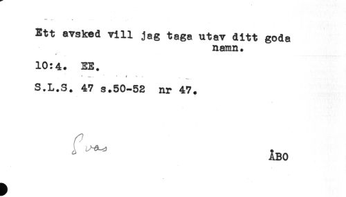 //// Ett avsked vill jag taga utav ditt goda //// namn. //// # //// 10:4. EE. //// * " * / ^ -- //// S.L.S. 47 s.50-52 nr 47. //// ^^ AB. ////