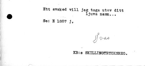 //// t //// ; .t- _ .. _ //// Ett avsked vill jag taga utav ditt //// ^ ljuva nann... //// Se: E 1887 j, //// t //// t //// KB:s SKILLINGTRYCKSREG. ////