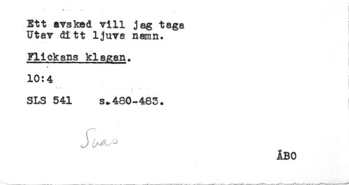 //// - . ' . - . . //// t //// Ett avsked vill jag taga //// Utav ditt ljuva namn. //// Flickans klagan. //// 10:4 //// * * ' " //// SLS 541 s^480-483. //// J ^ //// ÅBO ////