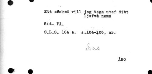 //// Ett afsked vill jag taga utaf ditt //// ljufvB namn //// 5:4. PÄ. //// . . + //// S.L.S. 104 a. s.124-126, nr. //// ÅBO ////