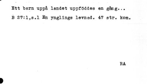 //// Ett barn uppå landet uppföddes en gång... //// B 27:l,s.l En ynglings levnad. 47 str. kom. //// RA ////