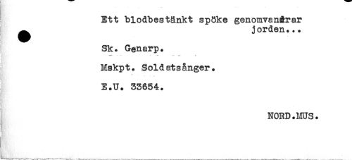 //// Ett blodbestänkt spöke genomvanRrar //// ^ jorden... //// Sk. Genarp. //// Mskpt. Soldatsånger. //// E.U. 53654. //// < //// ^ NORD.MUS. //// HW 'r i'' ' ' : ////