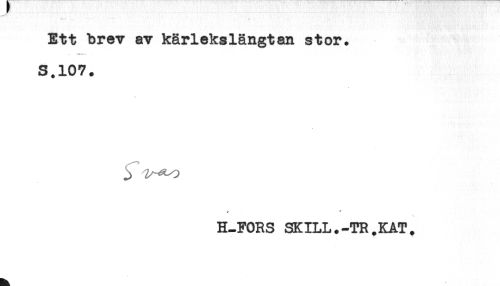 //// Ett brev av kärlekslängtan stor. //// S.107. //// H-FORS SKILL.-TR.KAT. ////