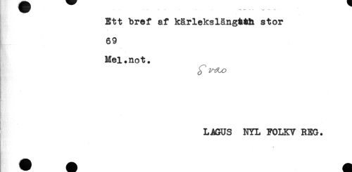 //// ... -. - - "*! //// Ett bref af kärlekslängtåh stor //// 69 //// Mel.not. //// LAGUS NYL FOLKV REG. ////