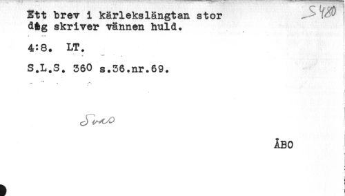 //// Ett brev i kärlekslängtan stor ^ //// d&g skriver vännen huld. //// 4:8. LT. //// S.L.S. 360 s.36.nr.69. //// "** "t //// r //// ÅBO //// - //// f //// ! ////