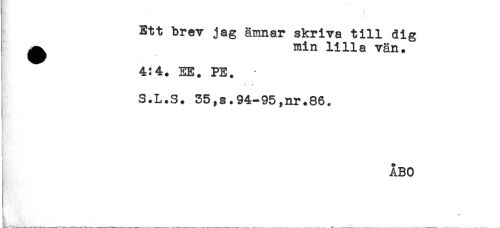 //// Ett brev jag ämnar skriva till dig //// ^ min lilla vän. //// 4:4. EE. PE. //// a //// ** f //// S.L.S. 35,s.94-95,nr.86. //// ! //// -' //// Ma - //// ii //// ) //// ÅBO //// t - ////