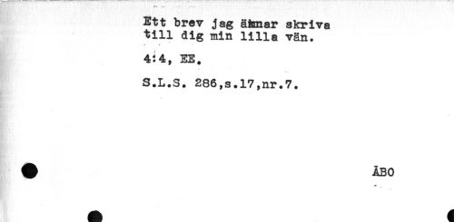 //// Ett brev jag ähnar skriva //// till dig min lilla vän. //// * * //// 4:4, EE. //// S.L.S. 286,s.17,nr.7. //// . //// < //// # ÅBO ////