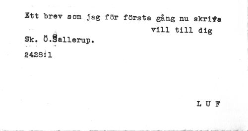 //// Ett brev som jag för första gång nu skrifa //// - //// vill till dig //// Sk. 8.§allerup. //// 2428:1 //// L U F ////