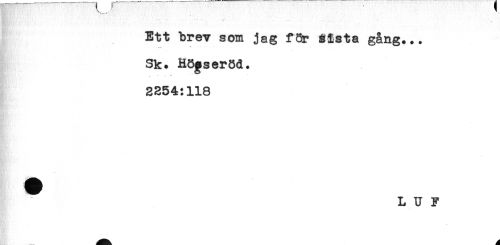 //// Ett brev som jag f8r Sista gång... //// Sk. HS^seröd. //// s- - - ' //// 2254:118 //// L U F ////