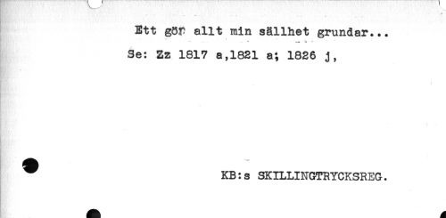 //// Ett gör allt min sällhet grundar... //// -- * * ' . , , * //// . . - - *** ^ * //// Se: Zz 1817 a,1821 a; 1826 j, //// ! //// . //// HR //// KB: s SKILLINGTRYCKSREG. //// _ ////