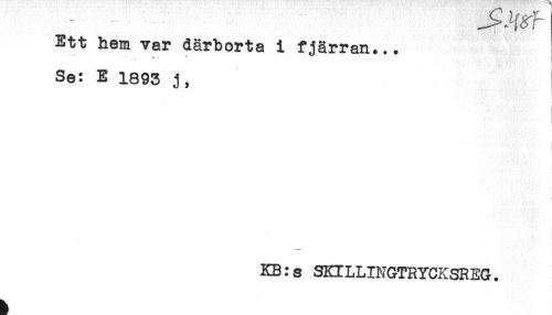 //// Ett hem var därborta i fjärran... //// **-* * //// * * //// Se: E 1893 j, //// ! //// I //// ' ** //// KB:s SKILLINGTRYCKSREG. ////