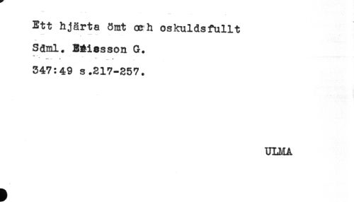 //// Ett hjärta ömt och oskuldsfullt //// ! //// Sdml. BÉlesson G. //// * * -- * * * ^ . //// 347:49 s.217-257. //// ULMA ////