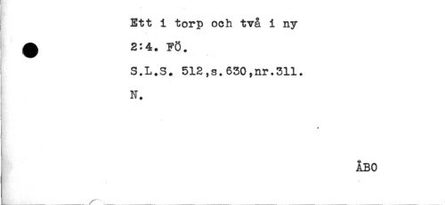 //// Ett i torp och två i ny //// ^ 2:4. FÖ. //// . //// S.L.S. 513,s.630,nr.311. //// ' N. //// i //// * //// ÅBO //// ^ _ _ ....., ... _ _____ ... _ _ _ .. . . ...... ////