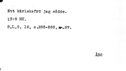 //// **** * - * -' //// Ett kärleksfrö jag sådde. //// 13:8 MU. //// * - //// *' * v " //// S.L.S. 19, s.255-260,/)r..87. //// ÅBO ////