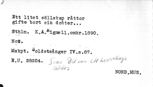//// Ett litet sällskap råttor //// gifte bort sin dotter... //// Sthlm. K.A.Rign3ll,omkr.l890. //// Not. //// ... //// *** //// Mskpt. ^oldatsånger IV.s.87. //// E.U. 28204. //// NORD.MUS. ////