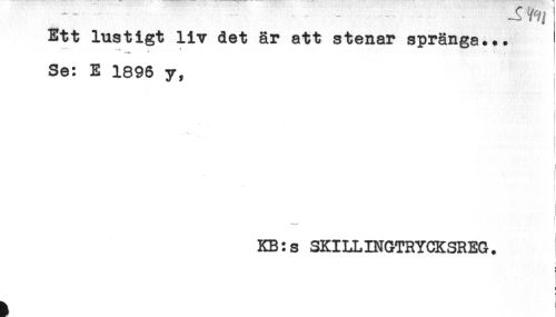 //// Ett lustigt liv det är att stenar spränga... //// '-* / * //// Se: E 1896 y, //// ..-*. f //// . //// t //// KB:s SKILLINGTRYCKSREG. //// : //// [ //// ! //// h t ////