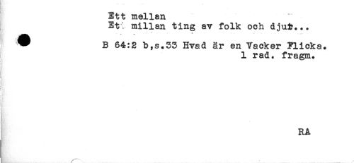 //// * //// Ett mellan //// Ef. millan ting av folk och djuR... //// .. : ' - - 3 - - ..... . //// * B 64:2 b,s.33 Hvad är en Vacker Flicka. //// 1 rad. fragm. //// i //// 1 //// -i //// } //// RA //// }H? ////
