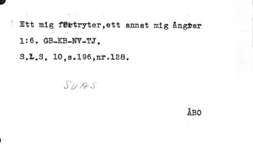 //// -*-. ... - V-- - * //// Ett mig f8^tryter,ett annat mig ångrar //// < //// * 4 //// 1:6. GB-KB-NV-TJ. //// S.L.S. 10,s.196,nr.126. //// j y , Vö //// ÅBO ////