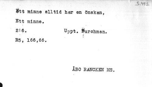 //// -' * ' ' //// ^tt minne alltid har en önskan. //// Ett minne. //// 7 - . //// 2*6. Uppt. ^urchman. //// , . ^ . //// R5, 166,66. //// ÅBO RANCKEN MS. ////