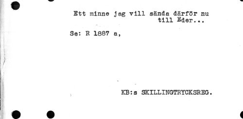 //// Ett minne jag vill sända därför nu //// till Eder... //// Se: R 1887 a, //// . //// KB:s SKILLINGTRYCKSREG. ////