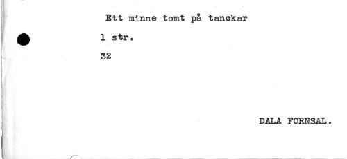 //// ! Ett minne tomt på t an ekar //// ^ 1 str. //// ! ^ //// DALA FORNSAL. ////