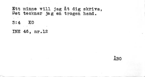 //// Ett minne vill jag åt dig skriva, //// Det tecknar jag en trogen hand. i //// * //// 'T //// 3:4 KO //// * //// INE 46, nr.12 //// ÅBO ////