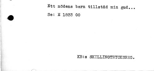 //// Ett nödens barn tillstäd min gud... //// € //// ^ Se: E 1833 00 //// * //// f //// KB:s SKILLINGTRYCKSREG. //// K ////