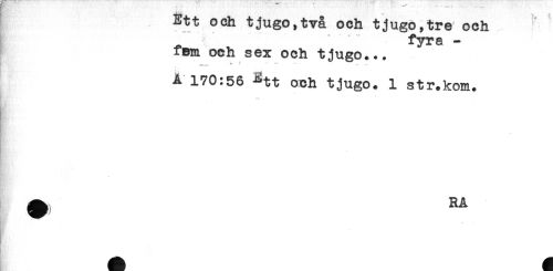 //// Ett och tjugo,två och tjugo,tre och //// ** -* ** //// fyra - //// fem och sex och tjugo... //// * - . * - - ... //// A 170:56 E^ och tjugo. 1 str.kom. //// * ////