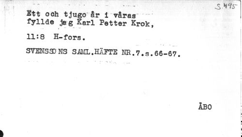 //// ' * * //// Ett och tjugo år i våras //// fyllde jag Karl Petter Krok, //// 11:8 H-fors. //// ' ^ ' ___ //// SVENSSONS SHCL.HÄFTE NR.7.s.66-67. //// ' * ' " * *" ? << . % //// t //// ! //// f //// ÅBO //// H //// ) ////